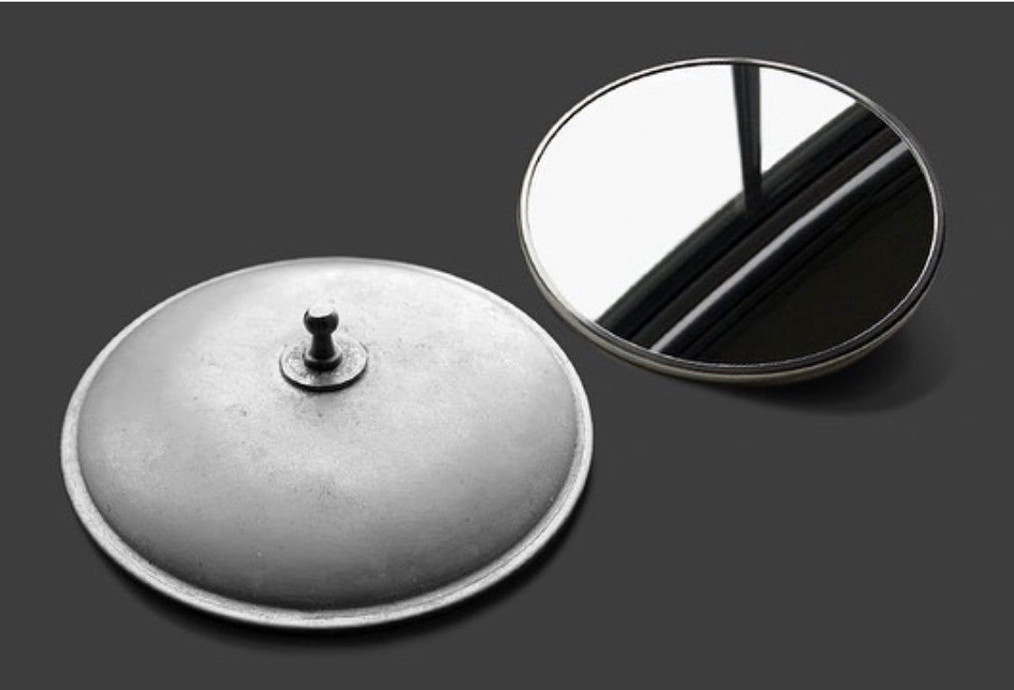 Firstly, the all important convex glass has been made from fully tested industry standard 2mm, 1260 radius first surface anti dazzle chrome glass, whilst the outer casing is hand spun in 0.7mm thick aluminium which after forming around a die, has had its edge carefully hand rolled to hold the glass securely. The rear mounting peg has been artfully machined to incorporate a hidden thread, which is then secured inside the casing by hand with a small polymer-insert lock nut and as an extra precaution, a small droplet of thread lock. This will eliminate the common issue of mirrors spinning on the peg.